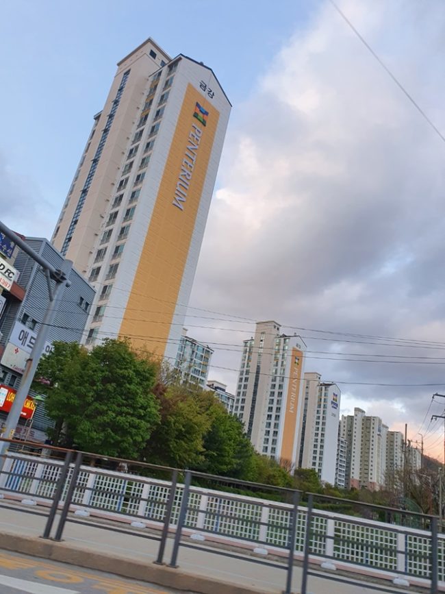 금강 펜테리움 아파트 외벽 채널 간판입니다. 사이즈가 큰 아파트 외벽 채널 간판은 SUS-스텐 을 이용하여 제작됩니다. 채널의 몸체를 만들어주고, 뚜껑을 만든 후 화면 부분은 PC를 이용하여 덮어주면 아래와 같은 모양이 완성 됩니다. 물론 내부에는 엘이디를 넣어주어 조명이 켜질수 있도록 만들었습니다. 이런 형태로 만들어지는 채널을 보통 오사이채널 이라고 많이 부르는데요. 여기서 오사이는 일본어입니다. 뚜껑을 몰딩처럼…