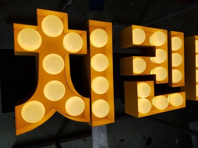 요즘들어 유행하고 있는 벌브전구 채널입니다. 불을 켰을 때와 껐을 때의 느낌이 정말 다르죠? 둘다 너무 귀엽네요. 또 다른 벌브전구 채널입니다. 요건 반구형 벌브 전구인데요. 전구의 색과 금속 채널의 붉은 색이 너무 잘 어울리네요. 요즘 레트로가 유행이라 그런가 이런 벌브형 전구 간판이 곳곳에서 많이 보이는데요. 특색있는 벌브 전구 채널 제작도 싸인어스에 의뢰해주세요. 느낌있게…